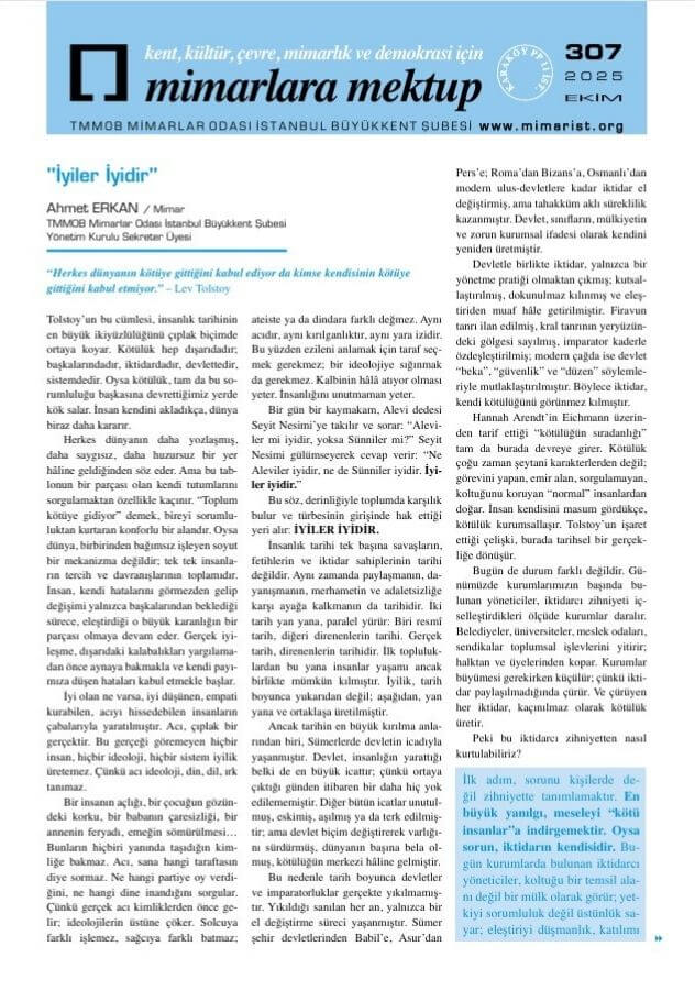Mimarlara Mektup Sayı: 307