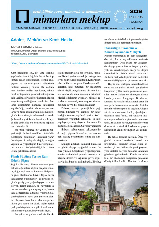 Mimarlara Mektup Sayı: 308