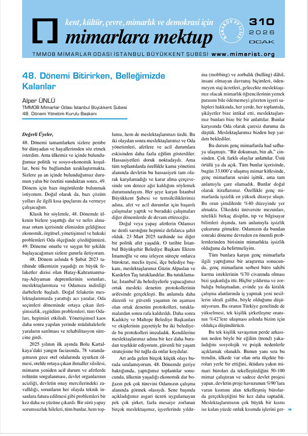 Mimarlara Mektup Sayı: 310