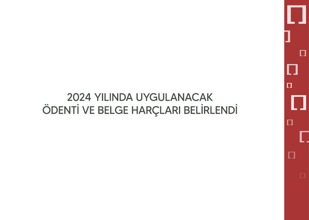 1 Ocak 2024–31 Aralık 2024 tarihleri arasında geçerli olacak ödenti ve belge harçları belirlendi.