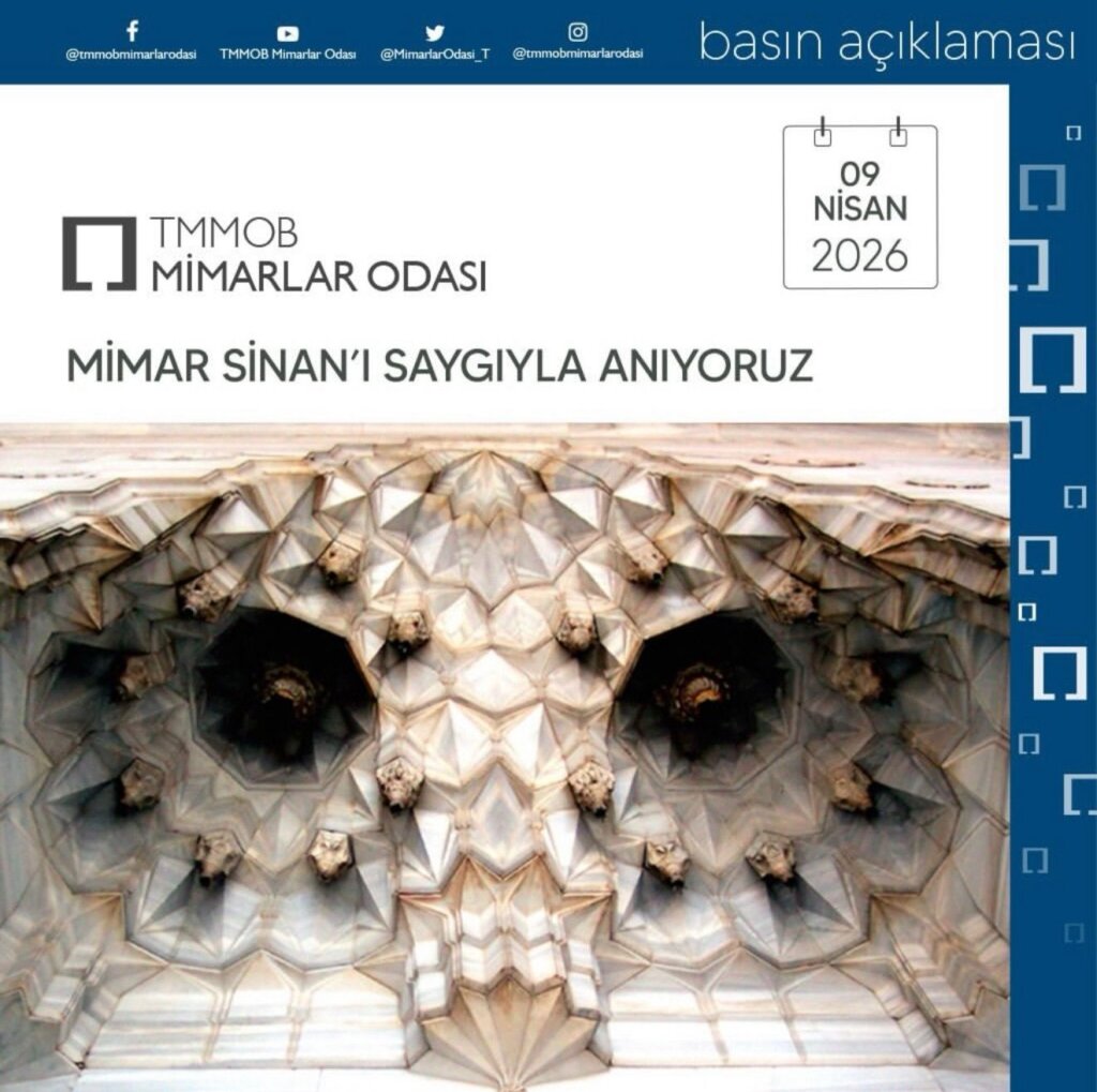 Mimar Sinan’ı kültürümüze ve uygarlık tarihine yapmış olduğu katkıları nedeniyle saygıyla anarken, O’nun insanı önceleyen mimarlığının izinde olarak, TMMOB Mimarlar Odası tüm Birimleriyle birlikte Türkiye’nin her yerinde, bilimi önceleyen, kamu yararını gözeten insan odaklı tutumunu kararlılıkla sürdürecektir.