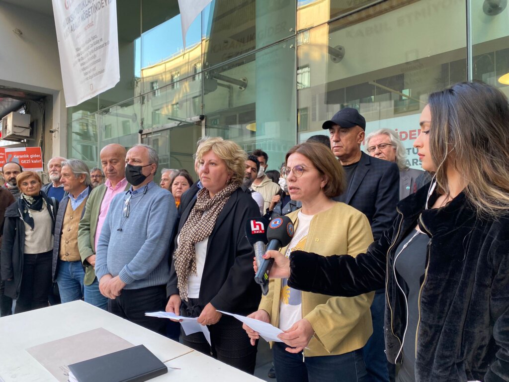 “Hiçbir delile dayanmadan yeniden açılan bu dava ve verilen tutuklama kararı hukuksuzdur. Yaşanabilir çevre, kent, doğa için hep birlikte verdiğimiz mücadelede tutuklanan arkadaşlarımızın yanındayız. Onurlu mücadelemizi kararlılıkla sürdürmeye devam edeceğiz. Arkadaşlarımız serbest bırakılıncaya kadar “Adalet Nöbeti”nde olacağımızı değerli kamuoyuna duyuruyoruz” denilen açıklamayı TMMOB Mimarlar Odası İstanbul Büyükkent Şubesi Yönetim Kurulu Başkanı Esin Köymen okudu. Açıklama sonrasında tutuklu arkadaşlarımız Mücella Yapıcı, Can Atalay ve Tayfun Kahraman’ın adalet nöbetine gönderdiği mesajlar okundu.