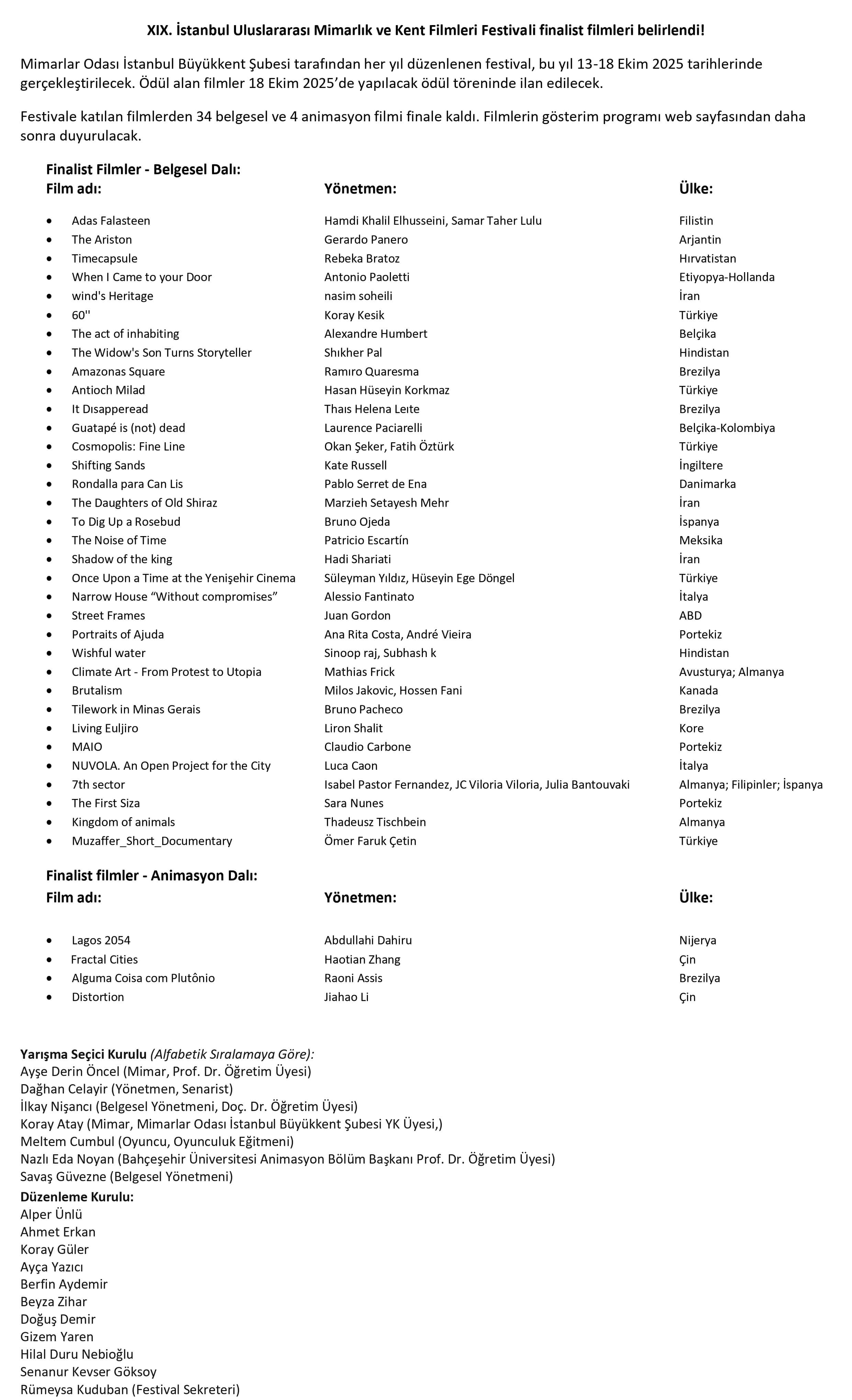 XIX. İstanbul Uluslararası Mimarlık ve Kent Filmleri Festivali finalist filmleri belirlendi!